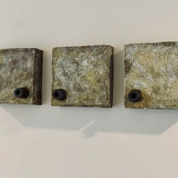 This work refers to the debris resulting from nature's robbing of coastal communities. The surfaces are born of these natural relics. With chemicals and heat I'm able to pay homage to these worn and battled pieces of human systems.